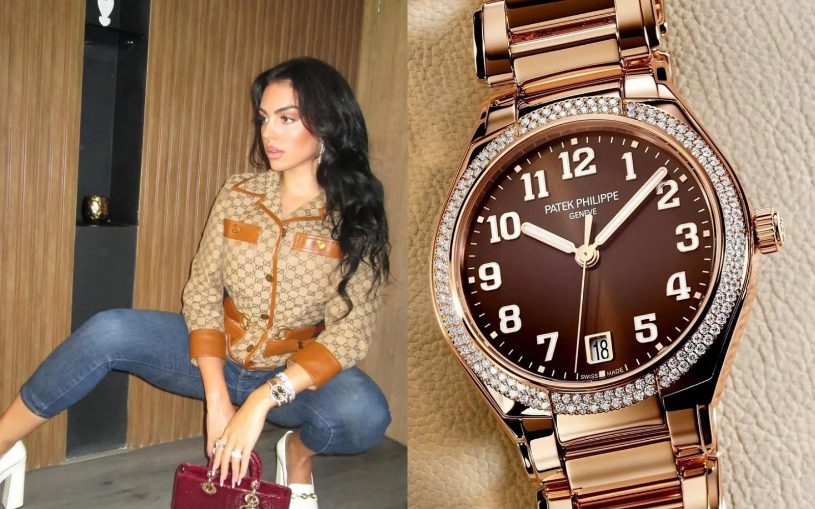 Georgina Rodríguez diện đồng hồ Patek Philippe Twenty~4 Diamond khi dạo phố - Ảnh: IGNV/ Patek Philippe